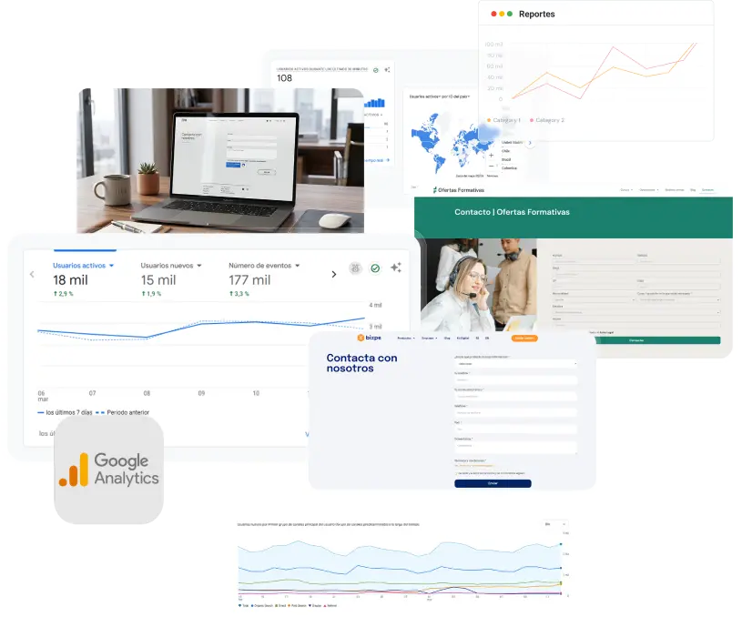 Google Tag Manager, eventos personalizados, seguimiento de conversiones, píxeles de remarketing, llamadas, formularios. Todo lo que necesitas para medir con precisión lo que importa para tu negocio.