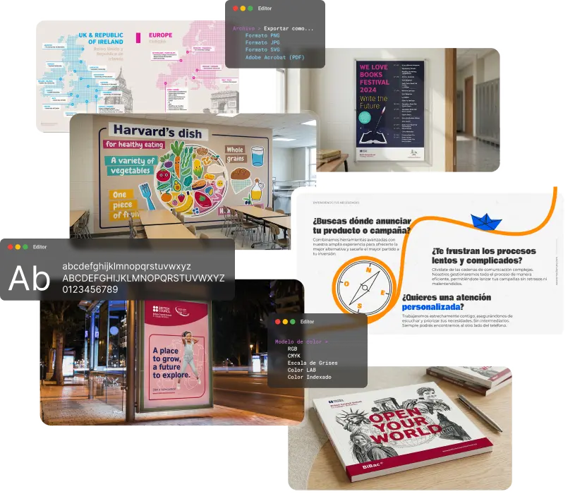 Creamos materiales visuales que representan bien a tu empresa y cumplen su objetivo: convencer, informar o activar. Desde piezas puntuales hasta sistemas completos de comunicación visual. Todo alineado con tu marca, entregado en los formatos que necesitas y en plazos que tienen sentido.