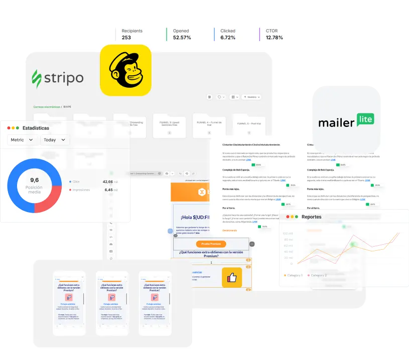 Aperturas, clics, conversiones y bajas analizadas mes a mes. Para identificar oportunidades de mejora y optimizar de forma continua basándose en datos reales.